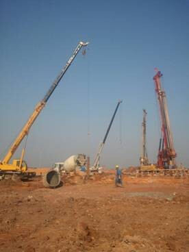 該工程巖層大部分為泥巖,巖層長時(shí)間浸水會軟化,承載力降低,為保證樁端承載力,成孔后必須加快鋼筋籠安放、導(dǎo)管下設(shè)施工速度,縮短巖層浸水時(shí)間。需要鋼筋籠、施工設(shè)備提前就位加速施工。