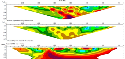 項目除了采用地質(zhì)調(diào)查測繪、鉆探、井探、常規(guī)巖土試驗和巖石剪切試驗外,還采用了瑞雷波勘探和高密度映像物探手段,根據(jù)物探結(jié)果并結(jié)合鉆探資料客觀的分析了覆蓋層厚度、滑體的空間分布特征及基巖表面破碎程度,得到全面真實的滑體空間分布特征。