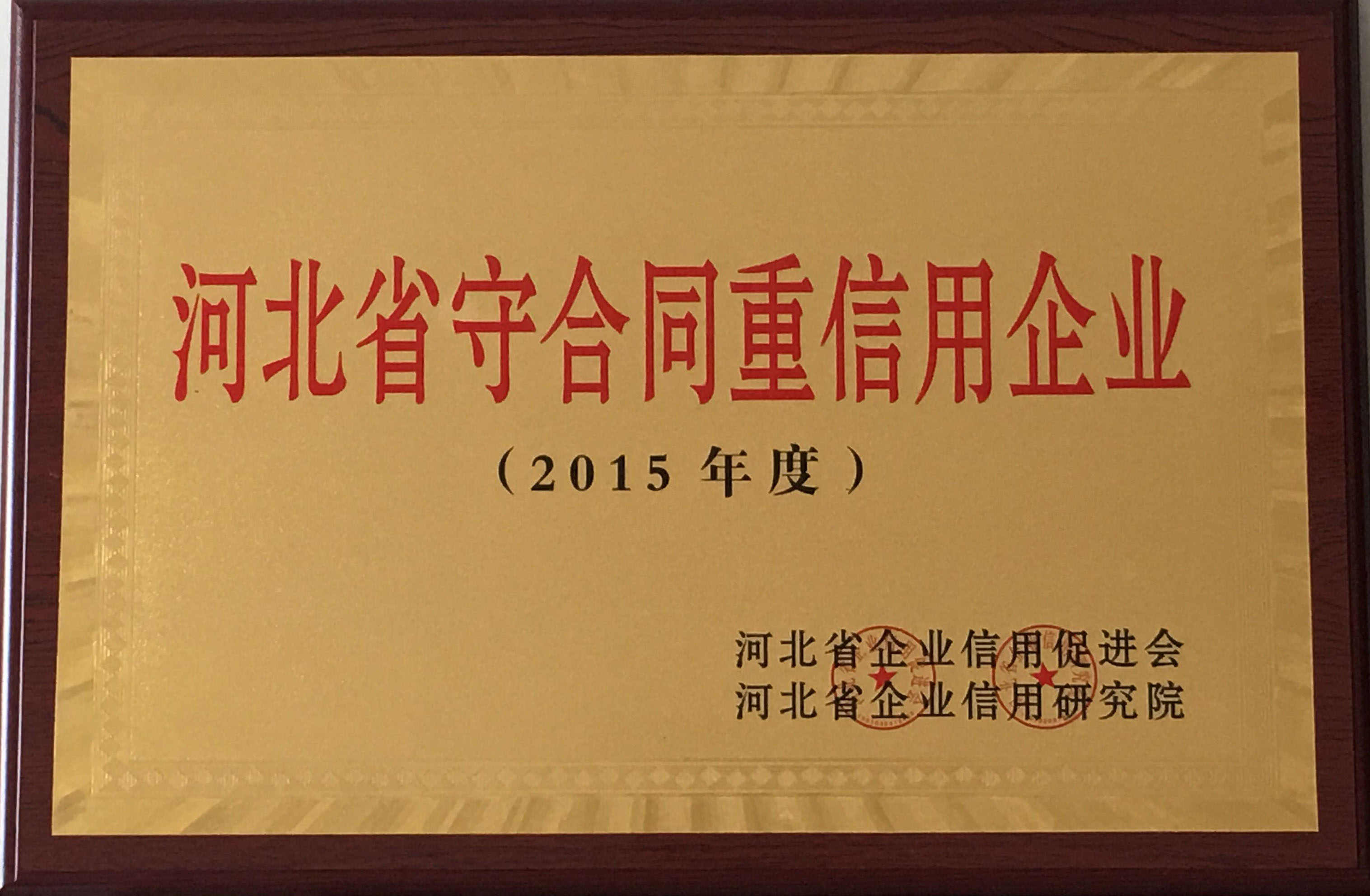 根據(jù)河北省文明辦、河北省企業(yè)信用促進(jìn)會印發(fā)的《“善行河北·誠信企業(yè)”主題實(shí)踐活動實(shí)施方案》,河北省企業(yè)信用促進(jìn)會、河北省企業(yè)信用研究院對“守合同重信用”企業(yè)進(jìn)行認(rèn)定,我公司被授予2015年度河北省守合同重信用企業(yè)稱號。