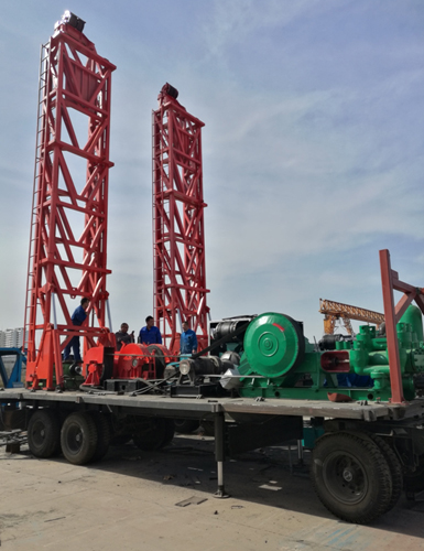 6、鉆機(jī)采用模塊化結(jié)構(gòu)設(shè)計,具有可獨立使用的轉(zhuǎn)盤部分、變速箱卷揚部分、動力部分、泥漿循環(huán)系統(tǒng)、拖車部分、鉆塔部分。具有配套齊全、結(jié)構(gòu)緊湊的設(shè)計特色。該鉆機(jī)于2014年3月19日獲得國家實用新型專利,2015年2月13日獲得河北省建設(shè)行業(yè)科學(xué)技術(shù)進(jìn)步一等獎,并獲得河北省科學(xué)技術(shù)進(jìn)步獎三等獎。