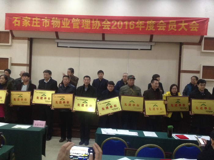 2016年12月28-29日,石家莊市物業(yè)管理協(xié)會(huì)2016年度會(huì)員大會(huì)在西柏坡明苑酒店召開,市住建局、市物業(yè)協(xié)會(huì)有關(guān)領(lǐng)導(dǎo)和各會(huì)員單位代表500余人參會(huì)。會(huì)上,對(duì)一年來為行業(yè)發(fā)展做出突出貢獻(xiàn)的先進(jìn)單位、先進(jìn)個(gè)人進(jìn)行了表彰通報(bào)。我物業(yè)服務(wù)公司榮獲“石家莊市物業(yè)服務(wù)先進(jìn)單位”,張運(yùn)凱經(jīng)理榮獲“物業(yè)服務(wù)先進(jìn)工作者” 榮譽(yù)稱號(hào)。我物業(yè)公司將以此為契機(jī),繼續(xù)推進(jìn)服務(wù)創(chuàng)優(yōu),加強(qiáng)物業(yè)管理,持續(xù)提高物業(yè)服務(wù)水平,為廣大業(yè)主提供更好的物業(yè)服務(wù)。