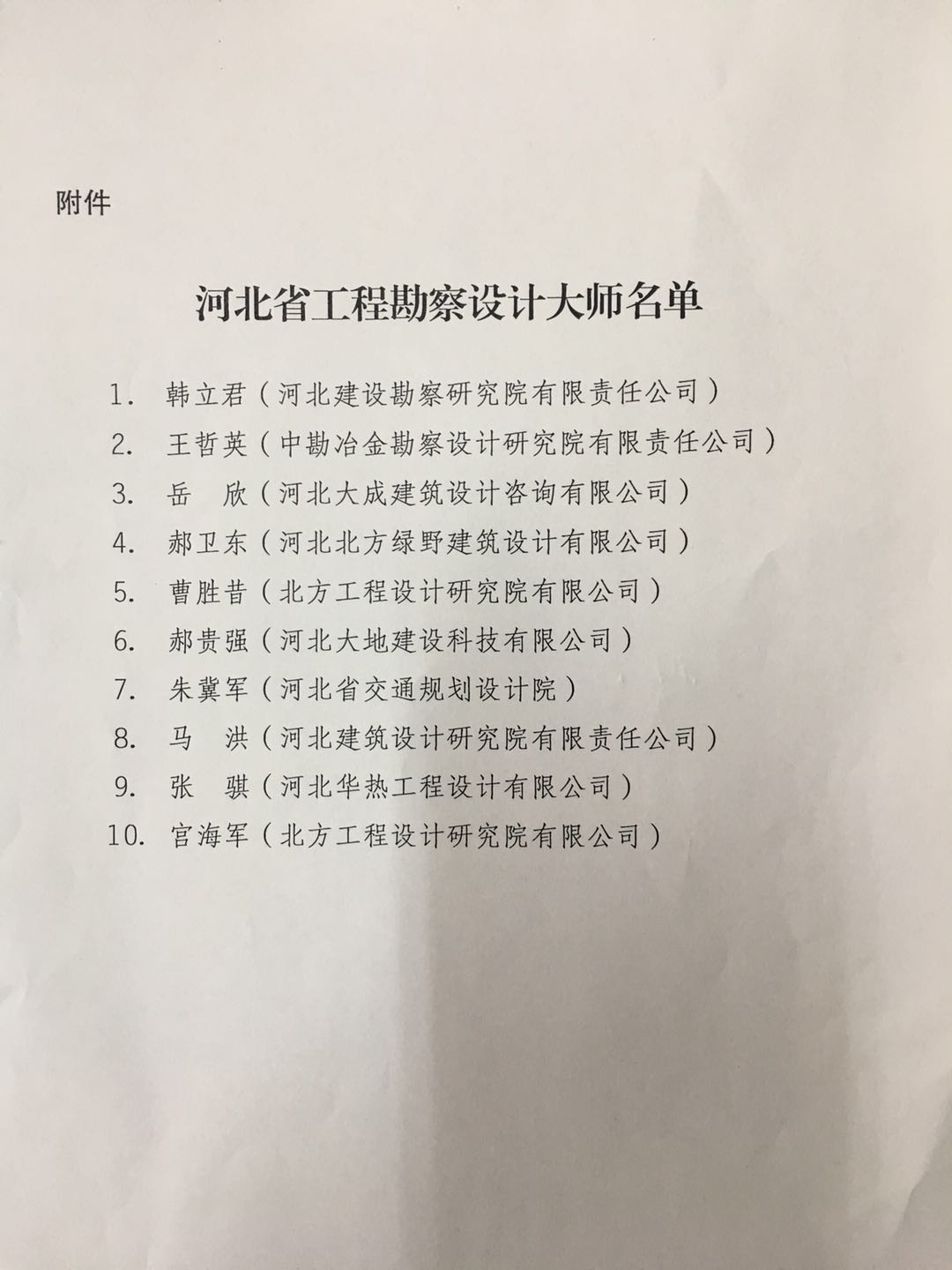 近日,從河北省住房和城鄉(xiāng)建設(shè)廳、河北省人力資源和社會(huì)保護(hù)廳聯(lián)合印發(fā)的《關(guān)于認(rèn)定河北省工程勘察設(shè)計(jì)大師的決定》獲悉,公司董事長(zhǎng)韓立君榮獲“河北省工程勘察設(shè)計(jì)大師”稱號(hào)。