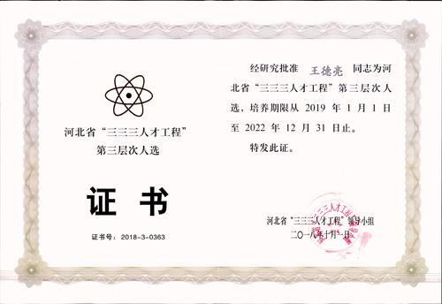 經(jīng)公司推薦,石家莊市人力資源和社會(huì)保障局組織評(píng)審,報(bào)河北省“三三三人才工程”領(lǐng)導(dǎo)小組批準(zhǔn)、地下工程公司王德亮榮獲河北省“三三三人才工程”第三層次人選。