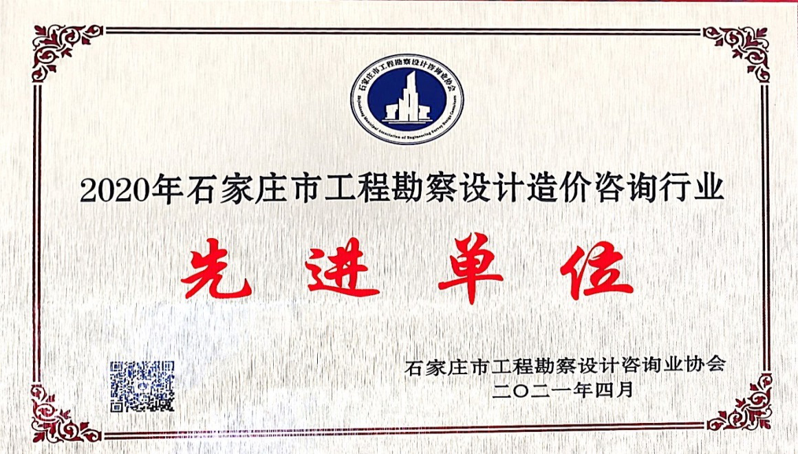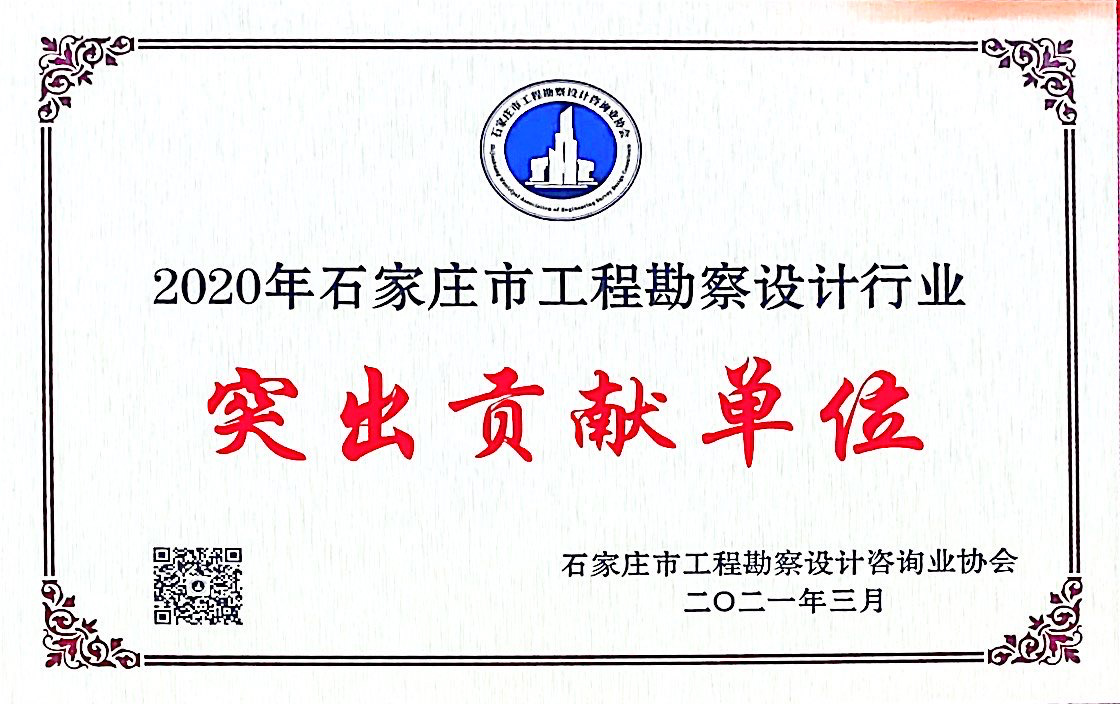 我公司憑借在勘察設(shè)計(jì)行業(yè)的杰出貢獻(xiàn)和企業(yè)綜合實(shí)力,榮獲由石家莊市工程勘察設(shè)計(jì)咨詢協(xié)會(huì)評(píng)選的“2020年石家莊市工程勘察設(shè)計(jì)行業(yè)突出貢獻(xiàn)單位”和“2020年石家莊市工程勘察設(shè)計(jì)造價(jià)咨詢行業(yè)先進(jìn)單位”兩項(xiàng)榮譽(yù)稱號(hào)。公司獲此殊榮,充分彰顯了我公司在行業(yè)內(nèi)雄厚的綜合實(shí)力,進(jìn)一步奠定了行業(yè)排頭兵的地位。