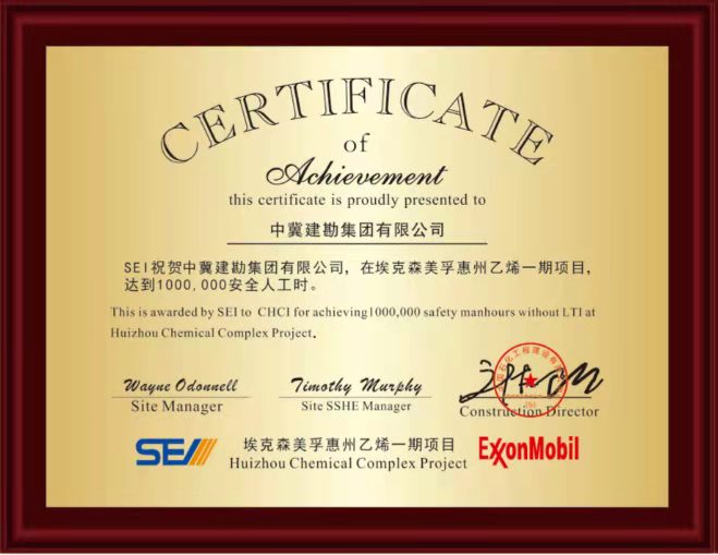 廣東惠州??松梨诨葜菀蚁┮黄陧椖繕痘こ?,榮獲??松梨冢ɑ葜荩┗び邢薰炯爸袊こ探ㄔO(shè)有限公司惠州項目部“達(dá)到1000000安全人工時”優(yōu)秀團(tuán)隊獎,耿蕩榮獲“安全先進(jìn)個人獎”。