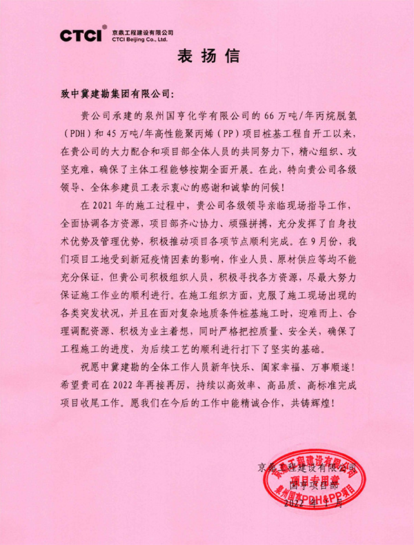 近期,公司連續(xù)收到業(yè)主及總包方發(fā)來的表揚信及榮譽稱號,對我公司所承擔(dān)的多個工程項目的生產(chǎn)組織、質(zhì)量管控、安全文明施工等給予了充分肯定。