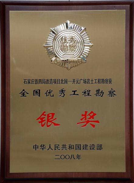 根據(jù)中華人民共和國建設(shè)部第807號(hào)文件,關(guān)于公布2006年度全國優(yōu)秀工程勘察設(shè)計(jì)獎(jiǎng)的公告,我單位石家莊鐵四局改造項(xiàng)目北國—開元廣場巖土工程勘察獲銀質(zhì)獎(jiǎng)。