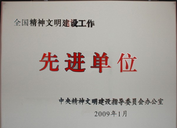 近年來(lái),我公司堅(jiān)持以科學(xué)發(fā)展觀(guān)為指導(dǎo),在全體員工中積極開(kāi)展精神文明創(chuàng)建活動(dòng),文明施工程度和員工素質(zhì)不斷提高,精神文明建設(shè)取得顯著成績(jī)。近日,我公司受到中央精神文明建設(shè)指導(dǎo)委員會(huì)辦公室表彰,被授予“全國(guó)精神文明建設(shè)工作先進(jìn)單位”稱(chēng)號(hào)。