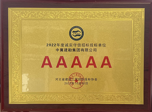 近日,我公司被河北省建設(shè)工程招標(biāo)投標(biāo)協(xié)會評為2022年度河北省建設(shè)工程招標(biāo)投標(biāo)誠實守信5A級施工企業(yè)。
