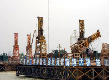 施工時間2005年4月到2005年9月。北塔樁徑2.2m、樁長約35-45m,32根;引橋樁徑1.8m、樁長約30-40m,24根;砼澆注約8298m3;入弱微風(fēng)化花崗巖9-25m,巖石強度20-70mpa。北塔基樁所處地層較為復(fù)雜,入巖深,巖層硬度高,施工難度大,入弱風(fēng)化巖層深度為3-7米;入微風(fēng)化巖層深度為5-8米,在我單位的精心組織施工下,平均成孔周期控制為7天。獲得2005年度公司優(yōu)秀工程二等獎。