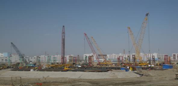 我公司采用泵吸反循環(huán)鉆機(jī)成孔施工工藝,共完成樁徑1.0m,樁長76.6-98.75m工程樁271根,制作安裝鋼筋籠約4600t。該工程創(chuàng)造了幾項(xiàng)國家和世界之最:民用建筑工程樁水下澆筑混凝土之最:C55;民用建筑工程樁鋼筋規(guī)格之最:直徑50mm三級鋼;民用建筑工程樁長細(xì)比之最:121:1。本工程樁孔垂直度要求控制在1/200以內(nèi),采用100%超聲波檢測,施工中制定了預(yù)防孔斜技術(shù)措施,保證了成孔質(zhì)量。