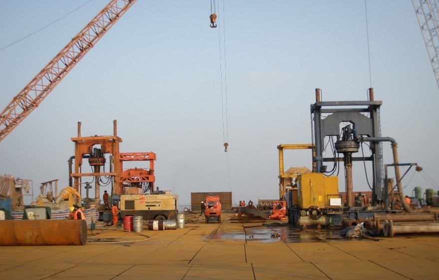本工程豎井采用鉆井法施工。鉆孔采用全液壓鉆機(jī)氣舉反循環(huán)排渣、一次性鉆進(jìn)成孔;采用鋼井壁,漂浮法下沉,孔口焊接接長;壁后充填水泥漿進(jìn)行止水固壁。