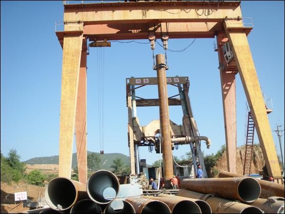 該工程位于山西省高平市泮溝村西北,設(shè)計(jì)鉆孔直徑1.2m,深度420m,表層套管規(guī)格φ1200mm×18mm螺旋管、工作套管規(guī)格φ820mm×18mm無縫管。