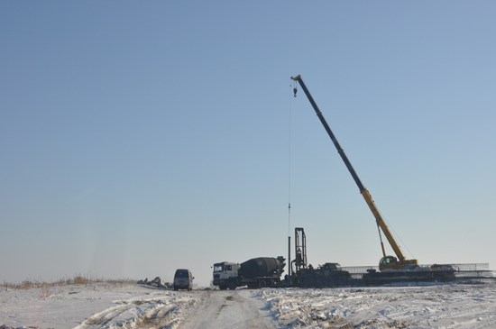 華能大慶綠源風電五棵樹風電場以及華能大慶綠源風電新立風電場樁基工程均位于黑龍江省大慶市大同區(qū)五棵樹以北。本工程為風機承臺下鉆孔灌注樁施工,地層主要以粉土為主。施工時采用回轉(zhuǎn)鉆機反循環(huán)成孔,本項目共完成直徑800mm鉆孔灌注樁814根,灌注混凝土14133.43 m3,鋼筋加工1573.71t,后壓漿1440m3。
