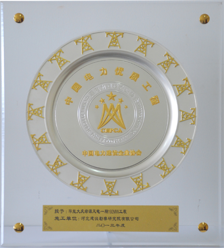 近日,我公司參與施工的華能大慶綠源風(fēng)電一期192MW工程(新立、五棵樹(shù)風(fēng)電場(chǎng)風(fēng)機(jī)樁基礎(chǔ)施工)被中國(guó)電力建設(shè)企業(yè)協(xié)會(huì)評(píng)為2013年度“中國(guó)電力優(yōu)質(zhì)工程獎(jiǎng)”。