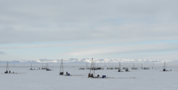 該工程建設(shè)地點位于內(nèi)蒙古錫林郭勒盟東烏珠穆沁旗烏力雅斯太鎮(zhèn)工業(yè)園區(qū)。擬建工程包括尿素裝置、氨合成冷凍、動力站、尿素散裝倉庫、尿素袋裝倉庫、煤氣化裝置、火炬、污水處理廠、液氨儲罐等構(gòu)建筑物??辈旆桨腹膊贾每碧近c786個,鉆探總延米為20680.0m?,F(xiàn)場施工于2013年2月20日正式開始,克服氣候嚴寒、大風大雪等不利因素,至2013年3月26日順利完成外業(yè)工作。